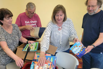 Kiwanis collect new and used books for children. These books are put into Red Wagons and placed in businesses and professional offices across southern Brunswick County for children to read and take home a special book while they are waiting with their parents.